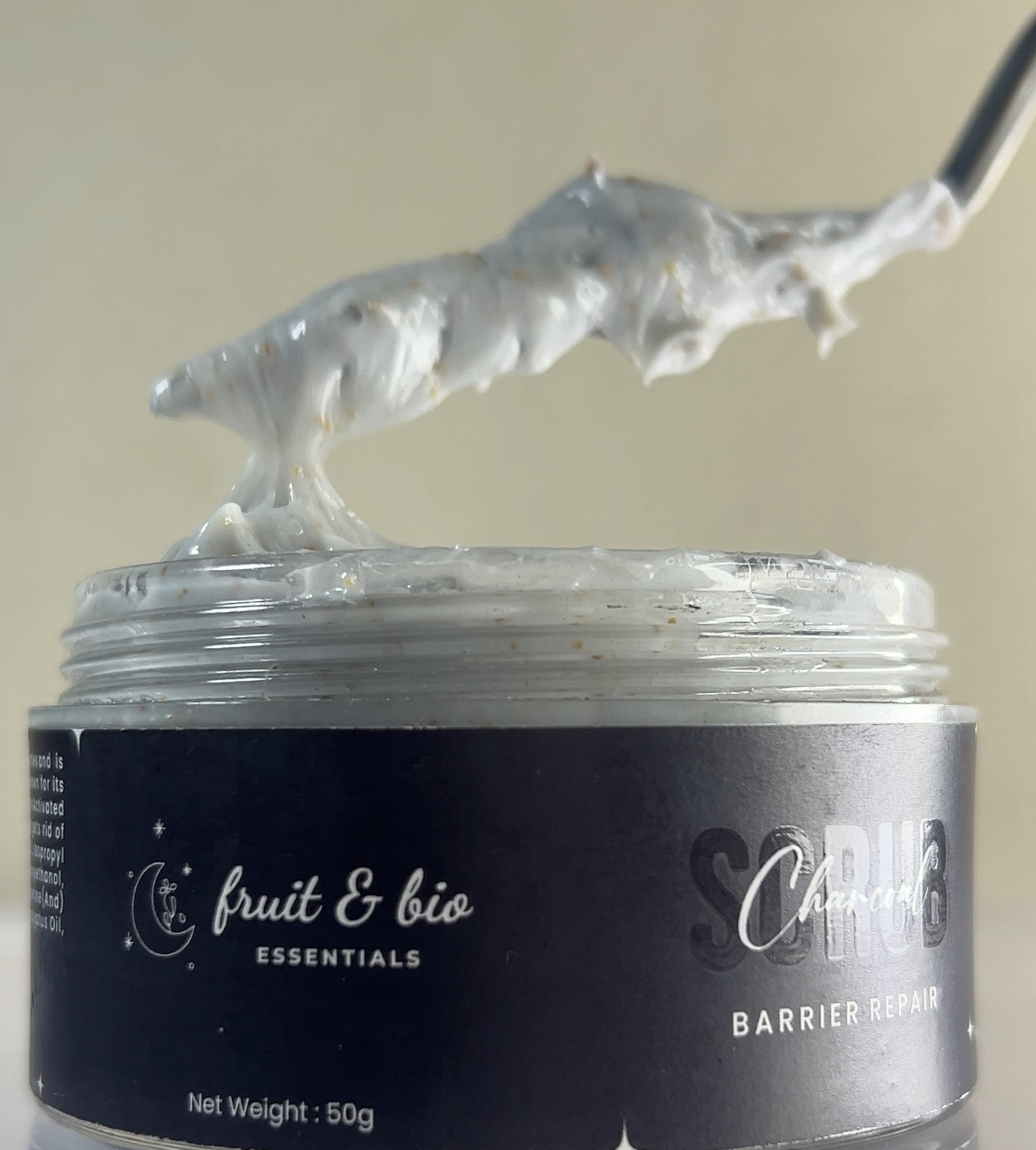 The Fruit&Bio scrub has lemongrass with some bit of healing properties and is antiseptic and is an effective cleanser for most skin types Eucalyptus: Known for its anti-inflammatory and anti-fungal properties and can heal skin infections Activated Charcoal Granules: Unclogs skin pores, removes dirt and pollutants, and gets rid of excess oil